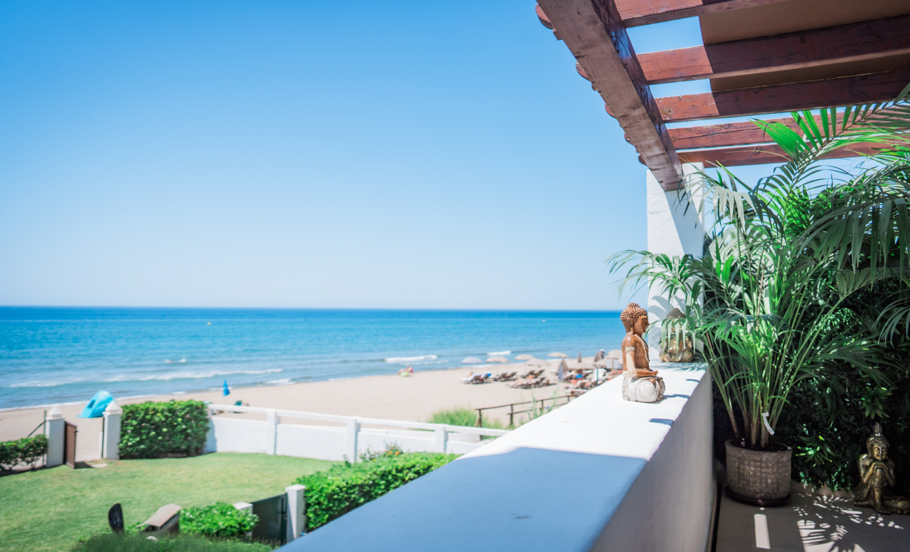 Located on the beach front of Las Chapas Beach in El Rosario, Casa Elegancia sits in a small private urbanization of terraced houses hosting a large area of communal gardens, a private pool and many other amenities. Featuring 4 bedrooms and 3.5 bathrooms, a sea-view room with a private balcony and a private jacuzzi.